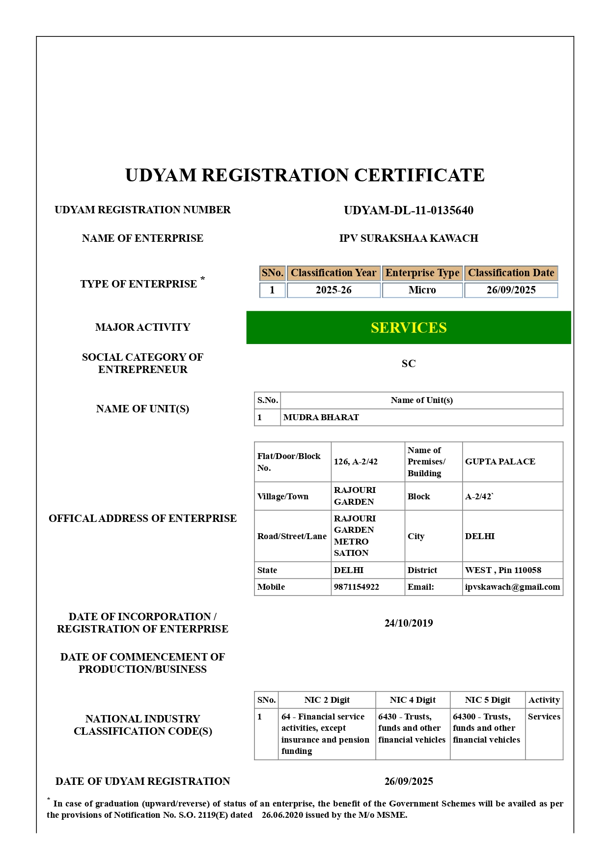 Registered under the Ministry of Micro, Small and Medium Enterprises, this certification provides credibility and access to government support for scaling sustainable development initiatives and employment generation across India.